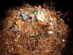 Nesting is a large scale interactive sculptural installation depicting how our collective trash destroys the landscape and the habitats of many species. Participants are asked to place trash within the nest as they walk through the installation. The accumulative result can be seen in the photos below.